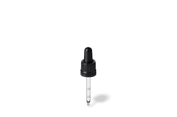 Καπάκι με σταγονόμετρο D02 black ribbed, D18, TE-b, Bulb TPEs-b 0.7, Tip conical 1.0, ORI15, Grad-b-A01