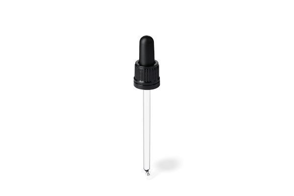 Καπάκι με σταγονόμετρο D02 black ribbed, D18, TE-b, Bulb TPEs-b 1.0, Tip bent ball 1.0, ORI60-111/GIN100
