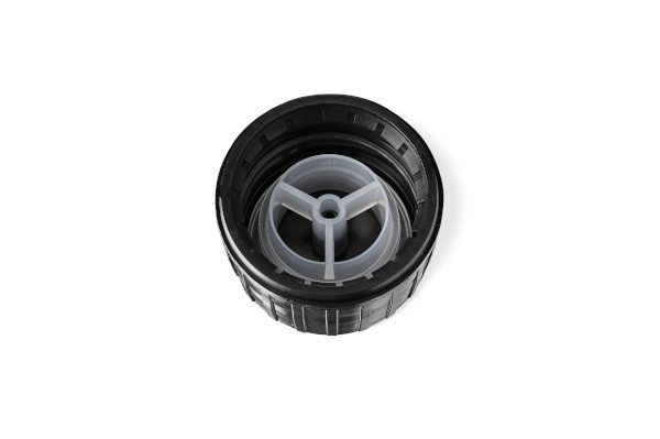 Βιδωτό καπάκι tamper evident PP28, III, PEHD, black, ribbed, pourer PELD (Aquarius)